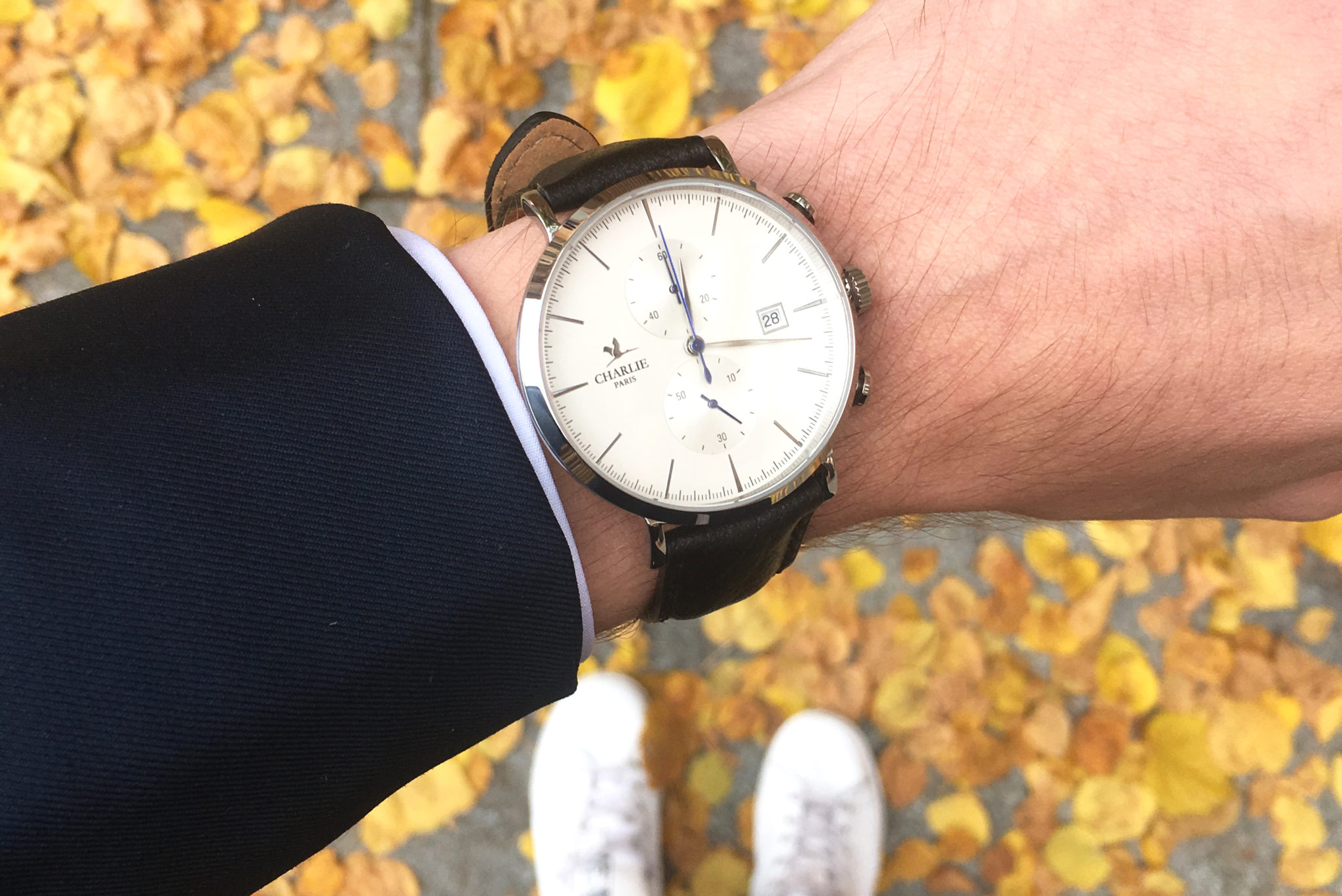 Pour accessoiriser les costume je porte la montre Chronographe de chez Charlie Watch. Je vous en parlerais très prochainement dans un article dédié !